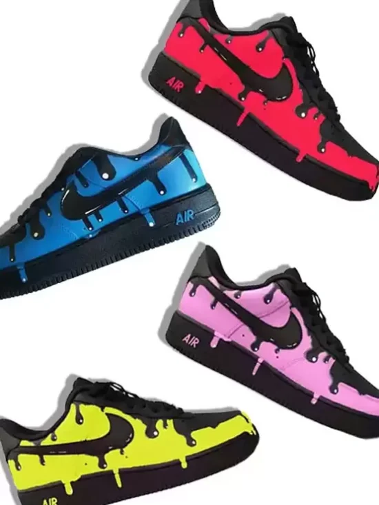 Colorful custom Air Force 1s with a black drip Swoosh — fully customizable and handmade! 🎨