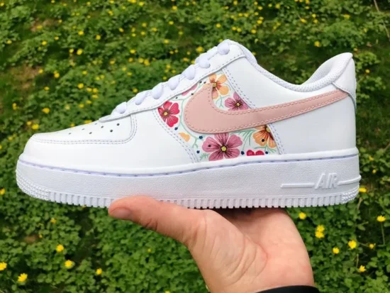 Stand out with these custom Floral Pink Air Force 1s. Hand-painted with vibrant flowers on a clean white base, they blend urban style with a fresh spring vibe—perfect for any occasion.