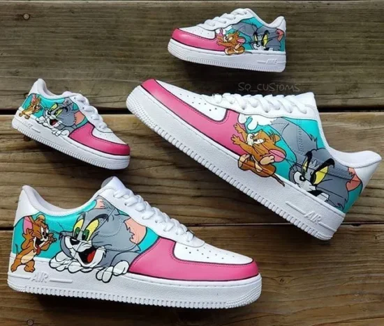 Classic Tom & Jerry chase scene on custom sneakers — fun, wild, and hand-painted! 🐭🔥